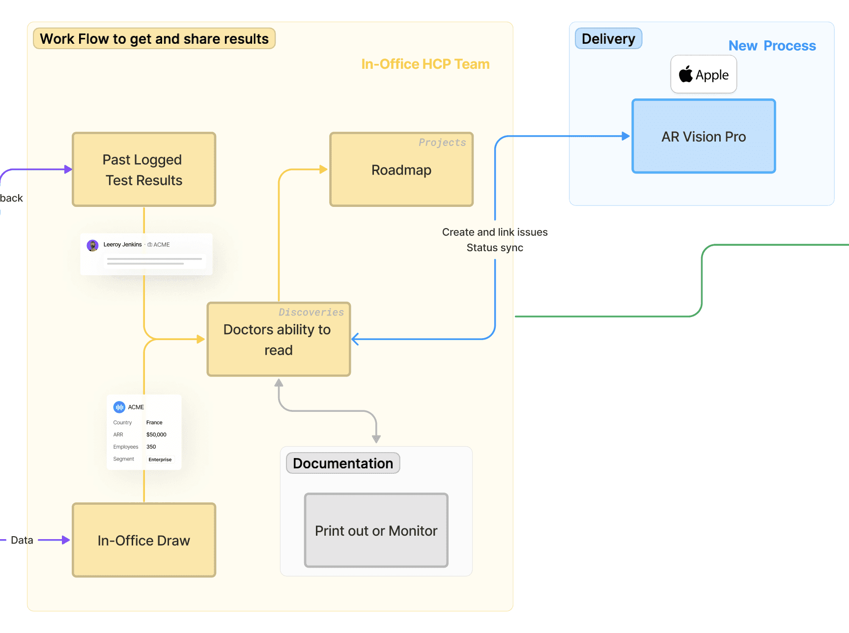 Action: We explored the use of the Apple Vision Pro AR headset as a tool for discussing blood results more interactively and efficiently. Collaborating with 3D visualizers and lighting specialists, we reimagined a less cluttered doctor's office. Interviews were conducted with doctors and nurses in different settings to understand their needs and constraints, focusing on enhancing in-person consultations rather than telemedicine.